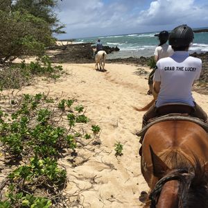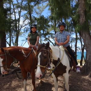 私の夫と私はハワイで10周年を祝っていて、ずっとビーチで乗馬をしたいと思っていました。ここはそのための素晴らしい場所で、美しい天気とさらに素晴らしい景色が楽しめました。私たちはプライベートのサンセットライドにとても満足しました。