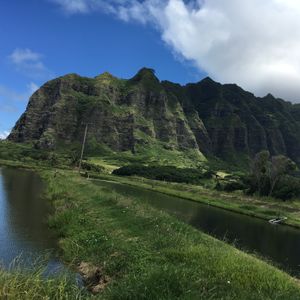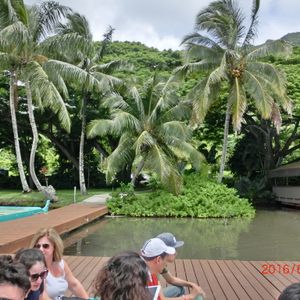①オーシャンボヤージ90分(カネオヘ湾カタマランクルーズ)はフィッシュボンドも通過するので、意外とおすすめでした。この池も最新作のジェラシックワールドの撮影に使われていました。またチャイナマンハット周辺をクルージングして、この付近の浜辺も映画の撮影地になっているそうです。ガイドのお姉さんの解説も楽しかったです。日本人も半数ぐらいで日本語専用のガイドさんと英語用ガイドさん2人付きました。