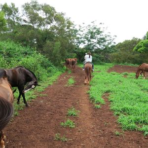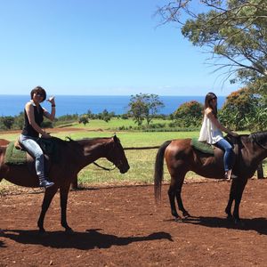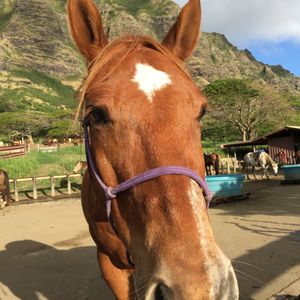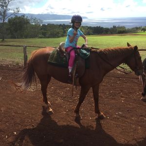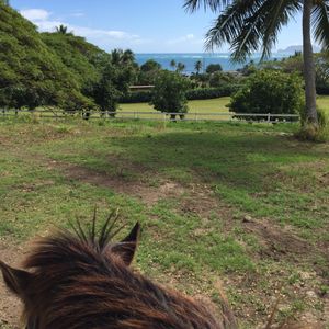 皆さんの評価を見て、まだ初心者で40鞍ほどレッスンを終えたばかりの私が参加しても迷惑かなあ、と思いつつ、しかしハワイの平原を馬で駆けてみたい誘惑に勝てず、恐る恐る申し込みました。結果はチャレンジして正解、とても楽しい時間を過ごすことが出来ました。普段はリング内でしか駆け足しないので、トレイルでの駆け足は初めてだし、ウェスタンの鞍や、片手で手綱を操作する方式も初めてでしたが、ガイドのエミリーさんが親切に教えてくれ、イングリッシュ乗馬よりも手綱を緩めるというコツを教わってからは、馬のLibbyちゃんが調子良く走り始めて、軽快なトロットやカンターで丘を駆け上がり、頂上では海と空とオアフの大地が見渡せる素敵な景色が。上級者でなくても、駆け足が出来るようになったら、ぜひ挑戦してみて欲しいです。きっと更に乗馬の魅力が発見出来ますよ。