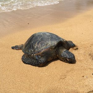 ワイキキから車でノースショア(ハレイワ)で野生のウミガメを鑑賞し、 タートルベイで乗馬を体験しました。初めてでしたが、おとなしく手綱の方向に歩いてくれます。さわやかな海風の中の海辺の乗馬は最高です。