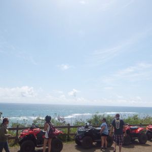 ホノルルから50分程でクアロア牧場に着きました。スタッフの方がウクレレで出迎えてくれました。プライベートビーチツアーは、とても感動的でしたが、天候が悪かったことと、時期的な問題であまり海で遊ぶ人は少なかったです(T_T)でも、シーカヤックでは海ガメに遭遇することができました♡