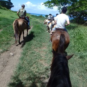 前回同じツアーを体験し、あまりに素晴らしい景色に魅了されました。再度挑戦したのですが当然海岸の素晴らしさは言うまでも有りませんでした。BUT! 非常に残念だったのはガイドさん!最初から最後まで、ハワイの案内というよりは自分の「意見」「自慢話」etc.etc...。ほんとにウンザリでした。リタイヤして週に3日だけ仕事をしていると言っていましたから、そのガイドさんに当たらないことを祈りましょう(笑)したがって★四つになりましたが、ハワイできっと一番美しい海を馬上から体験できますよ!