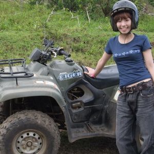 なんといってもお勧めは乗馬です!日本の乗馬アトラクションとは違い手綱を引くイントラなしで約1時間程、大自然の中を散歩!馬を操るのは手綱をもつ自分しかなく、とても調教された大人しい馬とはいえ、途中コースから外れようとしたり草を食んだり・・それを自分の手綱さばきで(たいした事はないのですが・・)元に戻す醍醐味はとても面白かったです!!映画村も希望通りのジェラシックパークを撮影出来たし、四輪バギーも大股でまたがり豪快な走りっぷりはリピになる事請け合いです!またクアロアスタッフの皆さんの気さくさは折り紙つきですよ!
