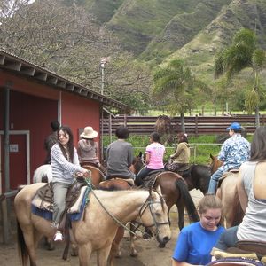 初めての引き綱操作で乗馬を体験しました。約2時間の乗馬でハワイの壮大な景色や映画の撮影地を回ることが出来、あっというまに時間が過ぎました。私の乗った馬は少し言うことを聞かず、突然走り出したり、止まってえさを食べたりというハプニングもありましたが、とても良い思い出です。馬は選ぶことができないため、その日その日の運かなぁと思いますが、どの子もいい子だと思います。