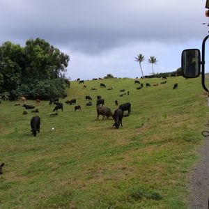 スタッフさんもコミュニケーションをとろうと努力してくれているのがとてもよくわかり、お土産でも見かける、レイの材料として使われるククイナッツの木を教えてもらったり、牧場内を進んでいくうちに、当然のことながら、牛が団体で現れたり、楽しかったです。