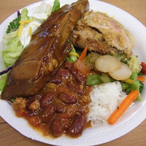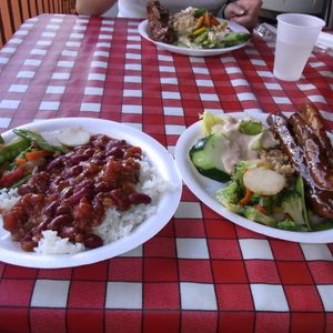 お昼ごはんも種類は少ないですが、リブがおいしかったので満足でした。(サラダ、パイナップル、ごはん、チリビーンズ、リブ、水、ジュース)