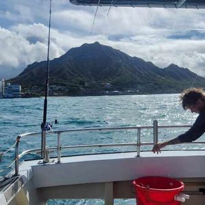 ワイキキビーチとダイヤモンドヘッドの冲からの眺めは最高でした。船釣りされてる方ならボウズは無さそうです。可愛いキャプテンと、可愛いポーターさんも最高でした♪