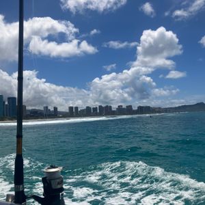 海釣りは初めてで船酔いが心配でしたが、波も静かでお天気もよく、ワイキキやダイヤモンドヘッド、ココヘッドなどの絶景を楽しみながらのクルーズだったので大丈夫でした。何カ所もスポットを移動して、イカを餌にじっと待ちましたが、残念ながら釣れず。でも他の方が釣った魚をお刺身やソテーでおいしくいただきました。誰かが釣るたびに歓声が上がり、とても楽しかったです!