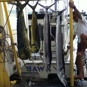 This was our first charter fishing trip both of us had ever taken. It was an unforgettable one at that. Captain Tony and Kelly were excellent guides and shared so much knowledge about both fishing and Hawaii in general. Both Captain Tony and Kelly warned us typically spring time is when fishing is best and summer time is a bit slower,but sometimes the fish surprised them. We ended up catching a Mahi Mahi and another gentleman caught a small tuna. Both catches were very exciting! Captain Tony helped guide us as the fish was being reeled in and most importantly making sure we were safe. If we ever make it back to Hawaii we will most definitely go fishing with them again but make it a full day fishing trip. Even if we had not caught fish it was nice to sit back and relax out on the Pacific.