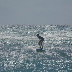 友達と2人で参加しました。グループレッスンで1人の先生につき4人でしたが、たくさん波に乗せてくれます。大満足でした。教え方も面白くて、日本語を話せる方もいらっしゃったのでリラックスして参加できました。