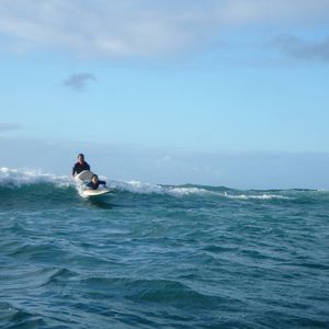 ハパルアマラソンに参加(人生初のマラソン)するついでに、サーフィンも初体験しようと口コミを参考にしてこのレッスンに決めました。英語レッスンということで、英語がしゃべれないので不安はありましたが、いざ始まってみるとジェスチャーなどでわかり、大丈夫でした。小さい波でしたが、乗れて楽しかったです!サーフィンにハマリそう!