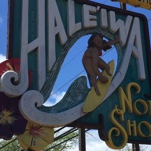 そこからハレイワに行く途中に、先週まで大会があったという(観たかった!残念)PIPELINEを見に行き写真タイム。勿論、有名なハレイワの看板前でも撮影してからハレイワの街を観光。またまたオススメのスムージーを飲みながら散策。絵や雑貨。サーフショップで買い物をしていたら、あっという間に1時間が過ぎ、道が混んでいたのもあり、1時間程かけてそのままホテルに送ってくださいました。