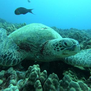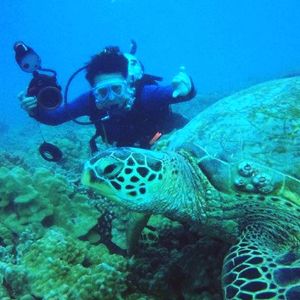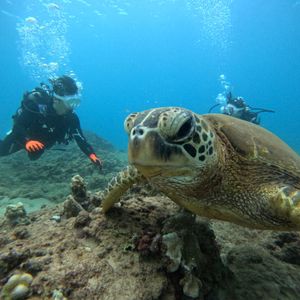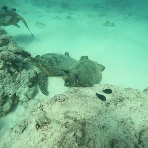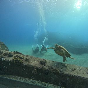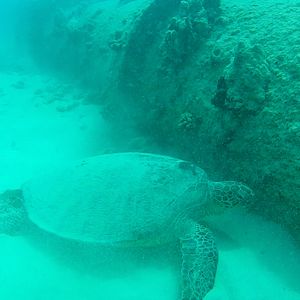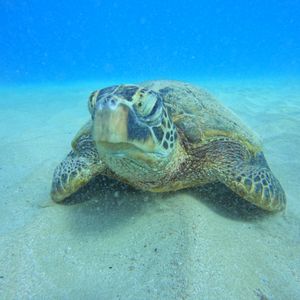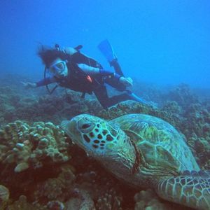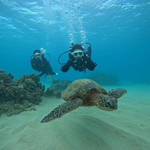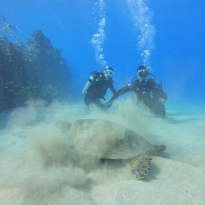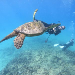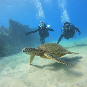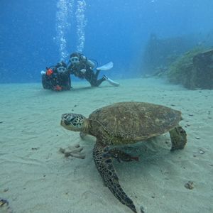 ダイビング中は海亀やハワイのエイ、キレイな海のお魚たちに別世界を見させてもらいました。ライセンスが無くてもベテランのあつしさんが丁寧に教えてくれます。ホテルまで迎えにきてくれ、帰りも送ってくれるので心配ありませんでした。