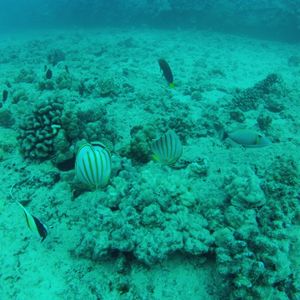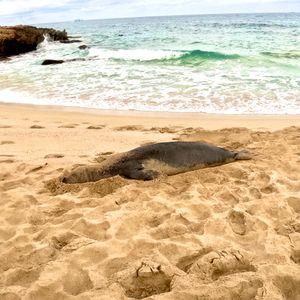 サンゴ礁でお昼寝中のウミガメや泳いでいるウミガメ、海底で休んでいるウミガメ、アジの群れの中こちらを見つめる可愛いハワイアンモンクシール(アザラシ)にも会うことができてその近さと可愛さに感動!
