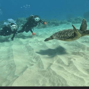 送迎もスムーズで、スタッフの方(kanakoさんginjiさん)の親切丁寧な説明で準備万端。firstダイビングでは、呼吸の仕方や耳抜き等比較的波の穏やかなところで実践を行い、second ダイビングては、約9mの深さまで潜る事が出来ました。途中、マンタやウミガメに遭遇し、まさに神秘的な体験をする事が出来ました。途中の休憩では、お水とスナックが配られ、帰りには、SPAMお握りを頂き皆で美味しく頂きました。こうして無事安全に体験が出来、良い家族旅行の思い出になりました。最後に内の娘がサングラスを車の中忘れたらしく、翌日わざわざホテルまで届けて頂きまして、ありがとうございました。これからハワイに来られる家族の方このようにスタッフのあたたかい指導のもと体験しては如何でしょうか。
