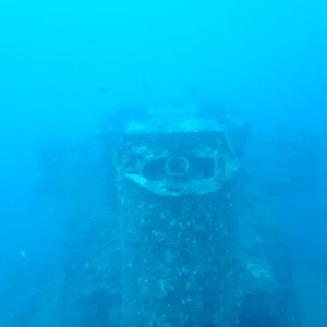 1本目は沈船、水深30m程度、光の差し込みがなく、視界は少し悪かったです。魚影はそこそこでした。寒かった。