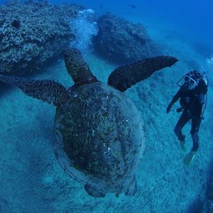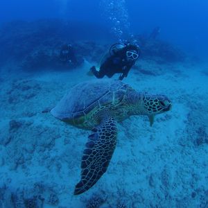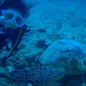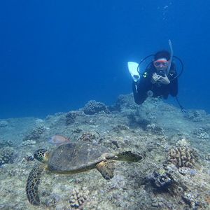 初めて海外で潜りました。今まで日本の海で何度か潜りましたが、あんなにたくさんの海ガメを見たのは初めてです。海ガメが驚くほどたくさん見れて、しかも正面で向かい合わせになった時は感動しました♪ハワイ旅行で最高の思い出になりました!ありがとうございました!