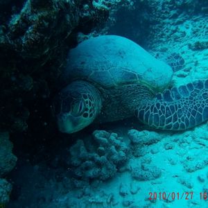 日本語が堪能なマットさんのおかげで楽しくダイビングできました。1本目のシータイガーレック(沈船)では一番目にエントリできたのでお昼ねカメとも遭遇!ホーシューリーフではでっかいイザリウオやホラ貝に出会いました!!。それからアフターダイブでの手作りスパムおむすび美味しかったです。来年もまたお願いします