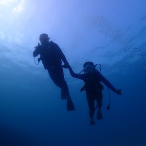 夫と2人、初めてのダイビングでした。1回目のダイブは水面近くの波が怖くてガチガチでしたが、あつしさんがこまめに様子を伺って下さいました。水面近くよりも深く潜った方が怖くなかったです。2回ダイブがあったので2回目は1回目よりも落ち着いて海の中を見渡してみたり、亀の近くまで寄ってみたり、幻想的で非常に楽しかったです。たくさん写真も撮ってもらい嬉しかったです。