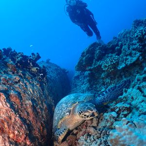 ダイビングではたくさんのウミガメに出会え、写真や動画もたくさん撮っていただき、最高の思い出になりました!また、送迎もホテルまでしていただけて助かりましたし、車内でのヒロさんとの会話もとても楽しく、ダイビングと同じくらい素敵な時間でした。