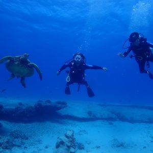 アドバンスを持っていたので、念願だった沈船探検が出来感激でした!もう一本も、ウミガメと写真が撮れました。透明度は、石垣などの離島に比べるとイマイチですが、ハワイで潜れた満足度は高いです。