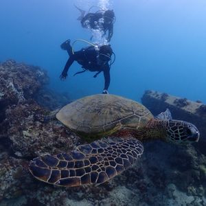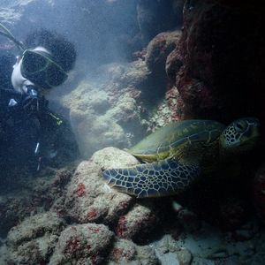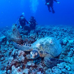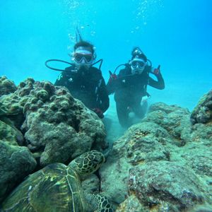 今回は2人(1人はダイビング初体験)で参加しましたが、ダイビング前にインストラクターの方の丁寧な説明があり、初めての人でも安心して潜れました。また亀も数匹見れ(見れない事の方が少ないようです)亀との写真も撮っていただき、ハワイの良い思い出になりました。今回は初めてダイビングする人がいたのでビーチからダイブでしたが、次回はボートからのダイブをお願いしたいです。