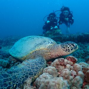 全く初心者の娘とともに参加しましたが、2本のダイブで多くの海亀に会えて、とても楽しいツアーでした。ダイビング後の温かいお茶や防寒着の提供など、気配りがとてもありがたかったです。