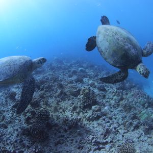 初めてダイビングを経験して、最初は不安と怖さとでうまく呼吸できなかったりしましたが、一から丁寧に教えていただだけるので、何も経験なくても安心しておよぐことができました。ウミガメにも会えて、写真を撮ったり、最終的に1人で泳げるまでになって、本当に楽しかったです!最高の思い出ができました!