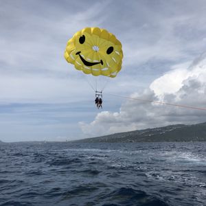 パラセーリングも10分弱の時間でしたが、もっと長く空を飛んでるような感じがしました。インストラクターのノリで海に足が着くくらいにおとされたり。ジェットコースターのようなフワッとする感じもなく、楽しい大空旅行ができました!