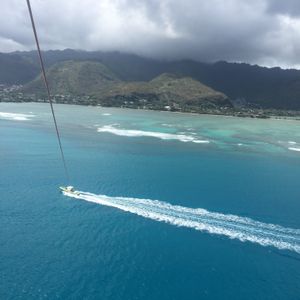 カカアコから出航でワイキキから送迎もすぐなので前の旅行でもホノルルスクリーマーに参加させていただき今回はパラセイリングでお世話になりました。朝8時台ということもあり海水が冷たかったので着水せずとお願いしましたがボートの運転テクニックも抜群で一度も着水せず高さ150mからの景色を堪能することが出来ました。どうせパラをするのなら150mがお勧めです。というか初めの人は不安や怖さがあると思いますが一度体験すればこんなに良い体験をもっと早くすればと思うはずです。9時過ぎにはワイキキに帰って来れるので他のスケジュールがある人にも気軽に出来ると思います。