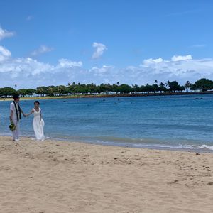 大好きなhawaiiでホロクとアロハで撮影しました!アラフィフで人生の残りを共に過ごすと決め、令和入籍した主人と記念に一枚で良かったのですがこのオプションに勇気を振り絞って申込みました。サロンのメークさんの心遣いと撮影担当の韓国人のカメラマンさんに乗せられ〜(笑)撮影したアラモアナビーチではお若いカップルが他に2組撮影していて〜私達は恥ずかしいわーと思いましたが、カメラマンさん(同年代と思います)が撮影した写真を見せてくれるのですが皆で老眼で見えないねーなんて笑わせてくれたり〜とても楽しく思い出に残る撮影が出来ました。ありがとうございます