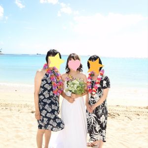 新婚旅行で初めてハワイを訪れた記念にと、ウェディングフォトプランを検討していたところ、こちらのプランを見つけ予約しました。サロンに到着するとすぐに撮影の流れの説明があり、その後ドレスとブーケ選び、ヘアメイクと進みます。ドレスは追加料金無しで好きなものを選べました。スタッフの方も皆さん笑顔がステキでどういったイメージが良いかなど丁寧に聴いてくださり、希望に近いドレスを次々と見せて下さいました。試着は3着まで可能です。選んで頂いたドレスに一目惚れして1着目で決まりましたが、どのドレスも本当にとても素敵でした。またブーケもラウンドやクラッチなど種類豊富で、選ぶのが楽しかったです。ヘアメイクさんもとても気さくな方で好みの色やヘアスタイルを確認しながらあっという間に支度が終わりました。選んだブーケに合わせて髪飾りも付けて下さり、自分が想像していた以上の仕上がりでとても嬉しかったです。 ビーチでの撮影も青い空と海が目の前に広がり素敵な写真をたくさん撮って頂きました。カメラマンさんもアテンドさんも明るく親しみやすい方たちでリラックスできました。持って行った携帯でも沢山撮って頂いたので、家族にすぐ送ることができました。新婚旅行で素晴らしい思い出になりました。こちらでお願いして本当によかったです。どうもありがとうございました。