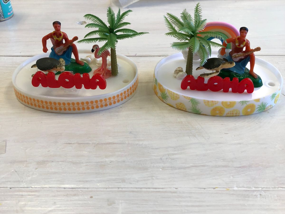 あと最後にきらきらはお店の方に入れて頂いたのですが量が多く、せっかくのかわいい貝殻や、ヤシの木にまとわりついて見えにくくなってたので、水を入れて、抜いて、きらきらをだいぶ出して自分なりの調度いい感じに調整しました。