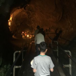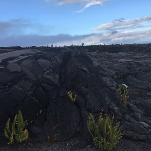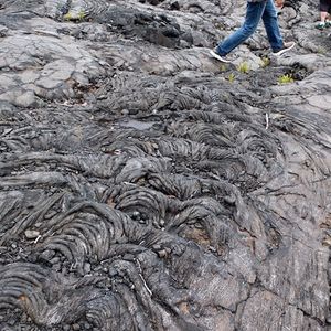それから明るいうちにカメハメハ大王の像を見学したり、ダウンタウン、クッキー工場の見学を経て、キラウエア火山の火口やジャガー博物館、溶岩トンネル、そして溶岩大地を観光。