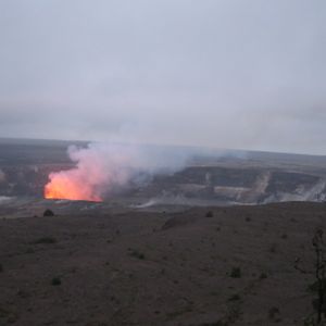 ハワイ観光の写真で見ていた、真っ赤な火口。