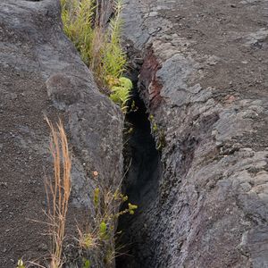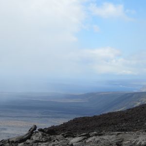 キラウエア火山は赤い溶岩は見れません。広大な土地と地面から湧き上がるガスを見る事ができました。火山口も真っ黒で、全てが黒い岩石でした。