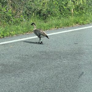 また、「ネエ ネエ」という昔、渡り鳥だった鳥がカナダから渡ってきた際、敵がいないのでハワイ島に住み着いたそうですが、見かけたら(現在200〜300羽)大変ラッキーということで、東京23区の広さに200〜300しかいないので、皆さん、注意して観察しましょう!とのことでバス車内から探していたら、二羽いました!