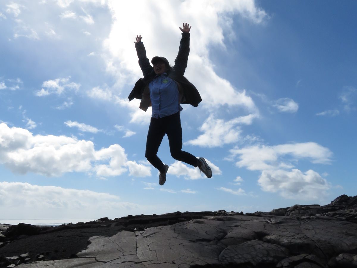 お天気にも恵まれて(雨のことが多いみたいです)、念願の溶岩ジャンプでは最高の写真を撮ってもらいました