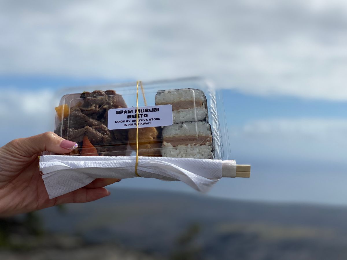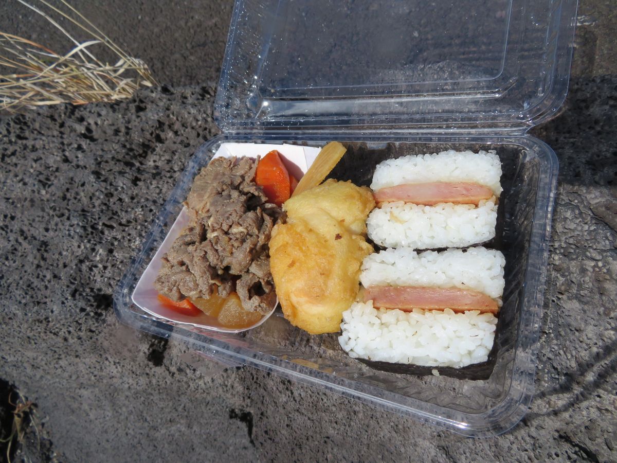 溶岩の上で食べるランチは絶景でサイコーでした!!スパムおむすび弁当美味しかったです。