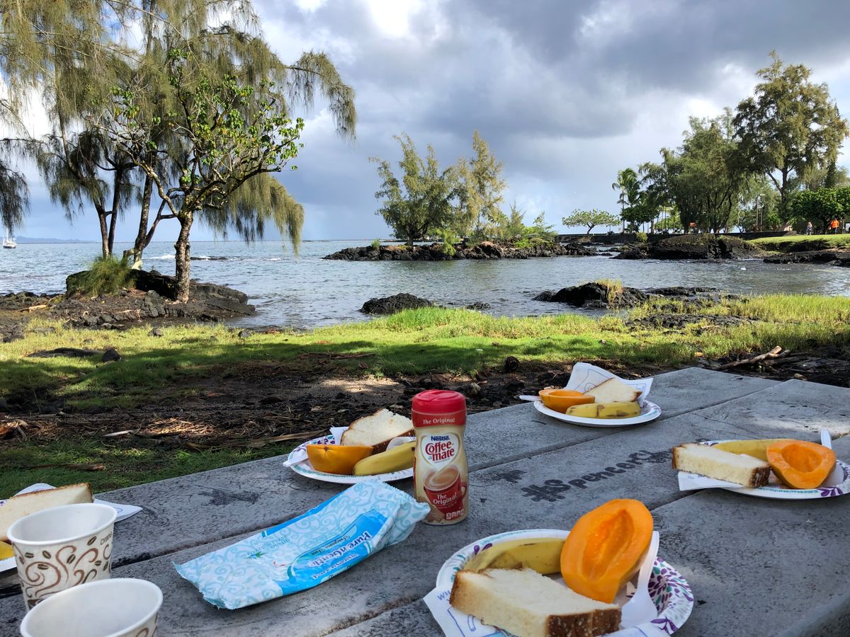 朝食がある分、観光のスタートは遅くなりますが、ハワイ島の良い雰囲気と新鮮なパパイアが味わえるのでむしろプラスだと自分は感じました。
