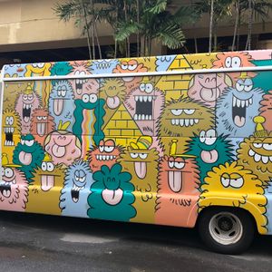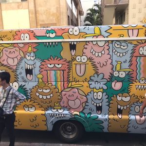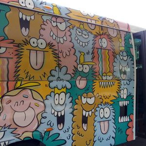 ひとりだったので、こちらのシャトルを予約。団体出口から出たらスタッフがいました。2階に案内されて30分近く待ち、やっと乗るシャトルに案内されました。有名なウォールアートのラッピングバスでした。