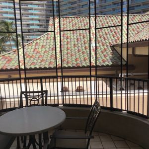 今回はカラカウア通りから一本入ったコンドミニアムに宿泊しましたが、ロバーツハワイはしっかりエントランス前までお迎えに来てくれました。