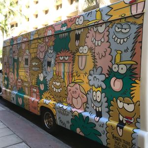 たまたま私たちの乗るバスがカカアコの有名なウォールアートの柄のバスでとても可愛かったです!
