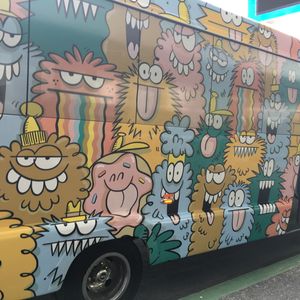 送迎車はカカアコで代表的なモンスターのウォールアート柄。とっても目立ち可愛いので 一般の人達が写真を撮っていました。