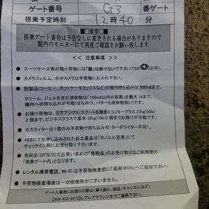 この紙に、便名、ゲート番号、搭乗予定時刻まで記載されており、