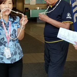 歓迎のレイを首にかけて頂き、ハワイに来たことを実感しました。