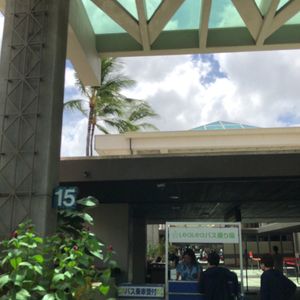 朝の早い便でついた私たちは税関もすんなり(10時頃到着便の姉夫婦は税関通り過ぎるだけに1時間弱要したそう。)、荷物の受け取りもすんなり。。バス乗る際に人が集まるまで少々待ち時間あり、ですがベンチに座ってハワイの朝の風を浴びながら。。。