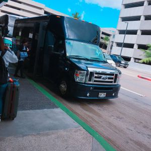 We were greeted at baggage claim and escorted to the bus. The bus then went to two other areas to pick up other passengers. It was approximately an hour after getting our baggage that we finally left the airport. The driver was very pleasant and friendly. The bus was clean and comfortable.