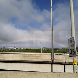 乗り心地も良いバスで、虹がウェルカムしてくれました!