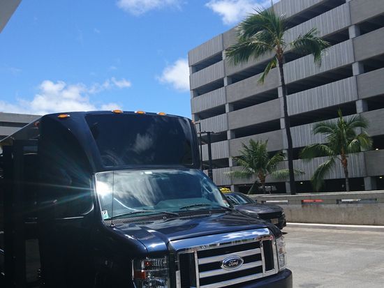ホノルル空港のグループ出口を出てすぐ右側のカウンターに受付があります。そこから係員の方に誘導してもらい、出発まで15分ほど待ちました。3組の客を乗せて、スムーズに運んでくれました。